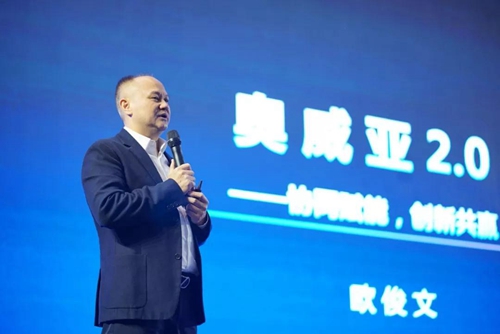 奧威亞創始人歐俊文先生在會上分享了《迎接奧威亞2.0時代》,指明:從外界環境而言,教育信息化市場已邁入了全新2.0發展階段;從內部發展而言,奧威亞邁入發展新階段,從民企轉變為央企,依托更強大的平臺與雄厚的技術資源,奧威亞已全面步入“新戰略、新生態、新機制”的2.0時代。