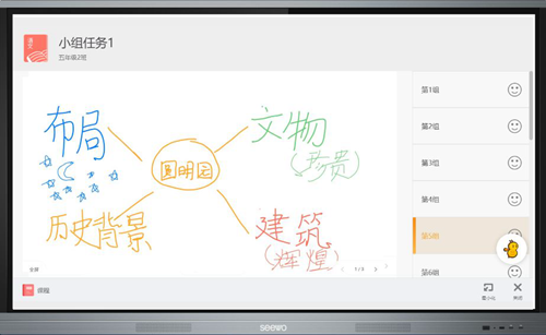 通過希沃易課堂小組協作模式,如在《圓明園的毀滅》這堂語文課中,老師的預設也許如下圖所示,但學生討論的結果顯然更豐富。小組協作的模式讓老師清晰地看到每一個組員的協作操作過程,并直觀查看組員討論結果,發現每一個學生身上更多可能和閃光點。