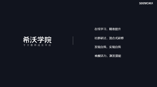 2016年,希沃成立了教師成長平臺——希沃學院,從網絡學習平臺、線上線下混合式研修、教師沙龍等各方面為老師提供學習成長路徑,幫助了一大批優秀教師脫穎而出:如年近退休燃起教育夢的青山老師、突破職業倦怠重尋價值的張老師、從技術小白成長為區域骨干的楊老師。