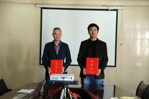 在希沃公司代表和學校代表的共同見證下,雙方進行了簽約并共同揭牌。