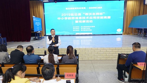 近日,為了促進(jìn)信息技術(shù)與學(xué)科教學(xué)的深度融合,加強(qiáng)多媒體交互設(shè)備的廣泛應(yīng)用,提升教師在信息化環(huán)境中的教學(xué)水平,提高課堂教學(xué)效率,由鹽邊縣教體局主辦,希沃教育研究院協(xié)辦的2019年鹽邊縣“希沃名師杯”中小學(xué)教師信息技術(shù)應(yīng)用技能競(jìng)賽暨觀摩活動(dòng)在鹽邊縣中學(xué)落下帷幕。