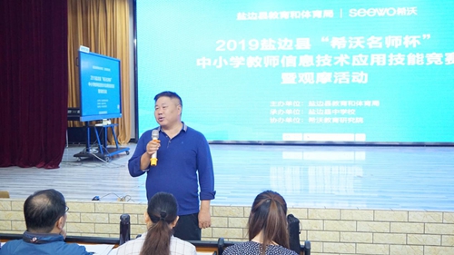 本次競(jìng)賽活動(dòng)于11月6日上午在鹽邊階梯教室正式開始,希沃教育研究院陳柯主持本次活動(dòng)。攀枝花市電化教育(技術(shù)裝備)中心廖主任在賽課活動(dòng)開始前講話:教育部2018年出臺(tái)了《教育信息化2.0行動(dòng)計(jì)劃》,現(xiàn)在教育信息化正處于從1.0到2.0發(fā)生根本性的變革時(shí)期,只有我們主動(dòng)適應(yīng)教育的信息化、現(xiàn)代化,才能不斷加強(qiáng)提升自我信息和學(xué)科素養(yǎng),才會(huì)有我市和鹽邊縣教育和體育的美好明天。