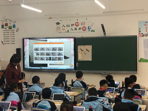 上午9點,家長們陸續(xù)來到學(xué)校走進課堂。此次開放日,學(xué)校特意安排了多門不同課程供家長觀摩。除了語文、數(shù)學(xué)、英語等基礎(chǔ)學(xué)科之外,還有書法、音樂等藝術(shù)學(xué)科以及親子互動課。老師們各展身手,學(xué)生們興趣盎然。書法課上,老師細致地講解“入”字筆畫書寫,同時讓學(xué)生各自進行練習(xí)并使用希沃學(xué)生平板對自己的書法作品進行拍照上傳,所有同學(xué)和老師都能夠及時看到彼此的學(xué)習(xí)結(jié)果。通過對比,老師再進一步講解,糾正落筆細節(jié)錯誤。在場的家長驚喜地表示,沒想到書法課還能和信息技術(shù)融合得這么好,不僅可以及時把孩子的學(xué)習(xí)情況直觀呈現(xiàn)出來,還能夠借此及時反饋孩子的學(xué)習(xí)情況。“如果以前自己上學(xué)的時候就有希沃易課堂就好了!