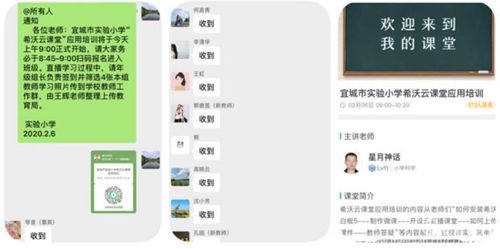 為全力保障師生使用體驗,希沃運營、客服小伙伴自發(fā)線上到崗。在區(qū)縣、學校、教授、學生家長的線上直播群里,都能發(fā)現(xiàn)他們的身影。在這些活躍的群聊中,張站很欣慰地看到師生們對希沃云課堂的認可。