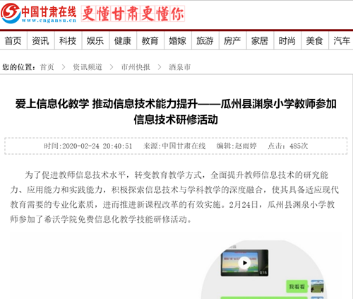 (中國甘肅在線報道瓜州淵泉小學的培訓)