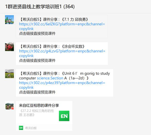 全縣參訓(xùn)的5000余名教師被分流到11個(gè)臨時(shí)組建的微信群。每個(gè)群中,由希沃講師專門(mén)運(yùn)營(yíng),并以直播教學(xué)、微信群交流答疑的方式進(jìn)行培訓(xùn)。參訓(xùn)的教師們認(rèn)真聽(tīng)講、熱烈討論,課后及時(shí)進(jìn)行實(shí)踐操作,按時(shí)完成每堂課的作業(yè)。尤其是很多年齡偏大的教師,對(duì)于這些現(xiàn)代化的教學(xué)手段不甚熟悉,但他們克服重重困難,好學(xué)好問(wèn),在希沃講師們的熱心幫助下,順利通過(guò)培訓(xùn)考核。