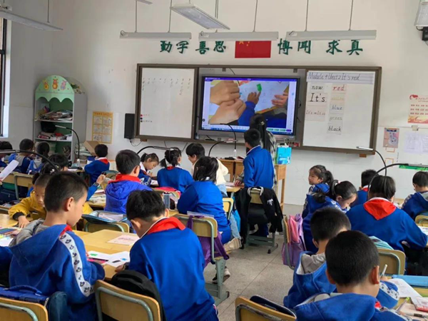 吉星全互動課堂走進長沙市雨花區楓樹山南屏錦源小學,老師通過新系統上全國錄播公開課。