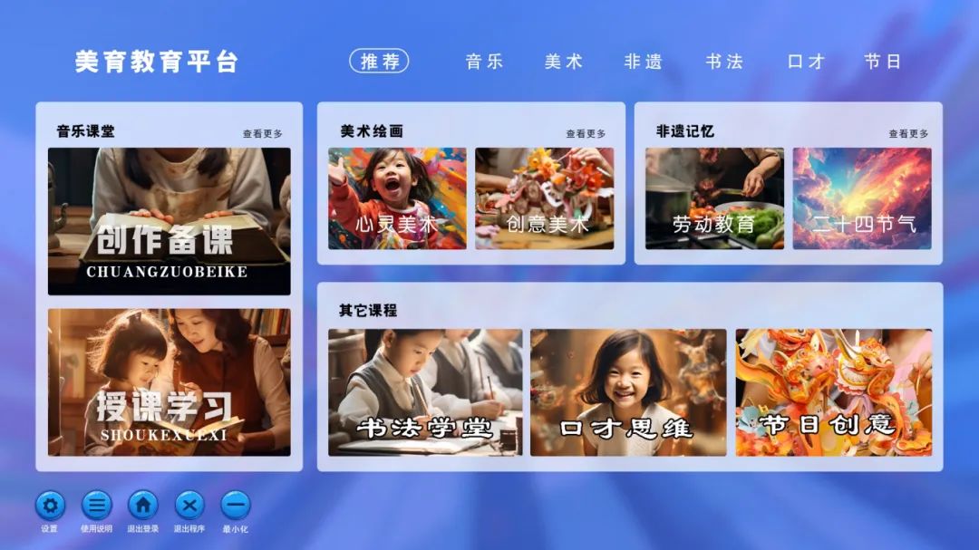 專注于美育教育,積極響應國家政策,立足當下素質教育需求,充分利用現代信息化手段,打造數字化、可視化為一體的智能數字美育教育平臺。