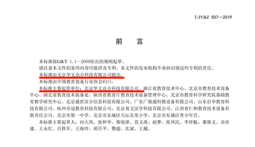 《中小學(xué)智慧書法教室裝備規(guī)范》團(tuán)體標(biāo)準(zhǔn)由華文眾合提出,由中國教育裝備行業(yè)協(xié)會(huì)歸口,主要起草單位有北京華文眾合科技有限公司、北京市教育技術(shù)設(shè)備研究中心、浙江省教育廳教育技術(shù)中心、湖北省教育廳教育技術(shù)裝備處、陜西省教育廳教育技術(shù)裝備管理中心、北京市教育科學(xué)院基礎(chǔ)教育教學(xué)研究中心、北京市一中及多個(gè)中小學(xué)及多個(gè)行業(yè)內(nèi)的廠商。