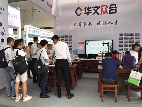 《中小學(xué)智慧書法教室裝備規(guī)范》團(tuán)體標(biāo)準(zhǔn)的牽頭制定單位華文眾合參加了此次展示會,并展出最新產(chǎn)品——第五代智慧書法教室,受到大批觀眾的喜愛。展示會期間,多位行業(yè)協(xié)會領(lǐng)導(dǎo)蒞臨華文眾合展位進(jìn)行參觀指導(dǎo)。