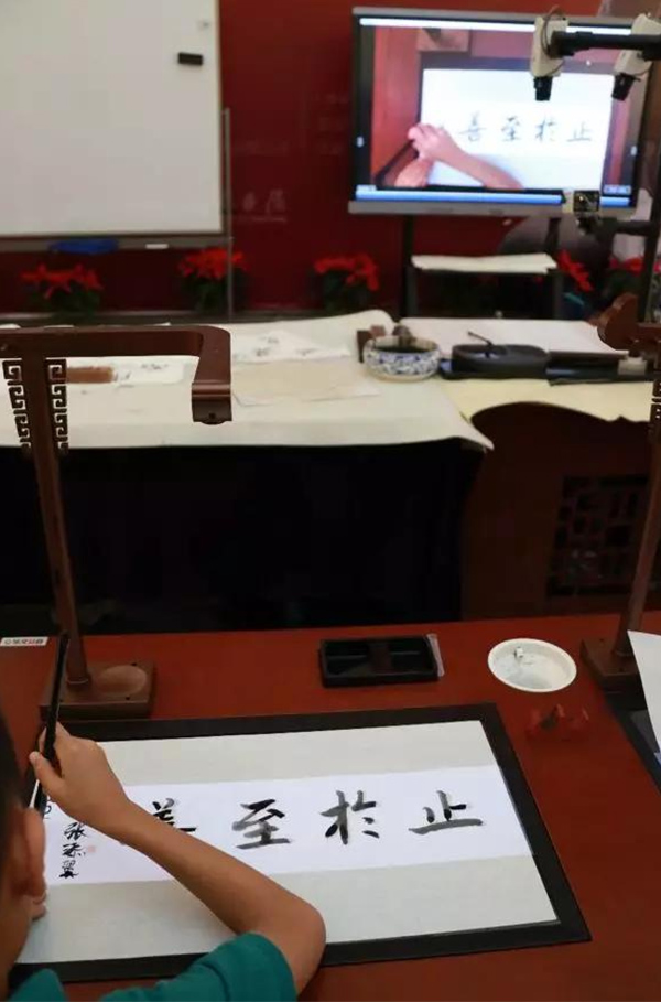 以傳統(tǒng)為基礎,華文眾合智慧書法教室秉承“傳統(tǒng)與科技融合,而不摒棄傳統(tǒng)”的理念,采用傳統(tǒng)的毛筆、墨汁和宣紙進行教和學,避免水寫、電子模擬等書寫體驗給學生造成不良影響。學生從最初學、練書法開始,從始至終都使用筆墨紙,養(yǎng)成一致的筆觸感,脫離平常練習的教室也能使用筆墨紙寫出漂亮的毛筆字。