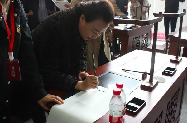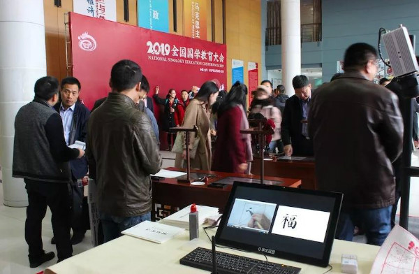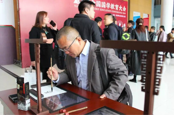 作為國學(xué)精粹的傳統(tǒng)書法文化是此次會議的熱門議題,會議期間展出了華文眾合第六代智慧書法教室。參會領(lǐng)導(dǎo)及嘉賓駐足參觀、體驗,興致高昂。