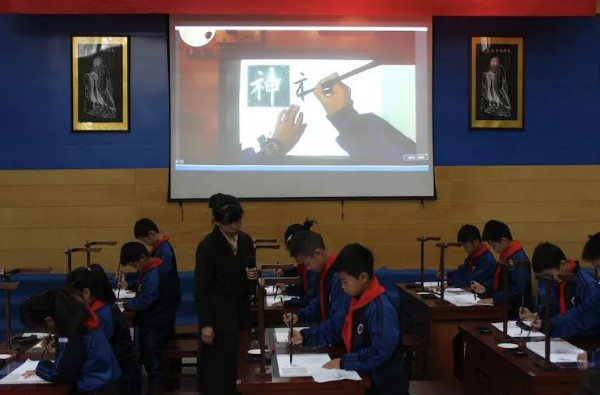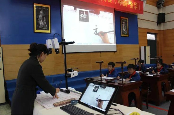 22日上午,2019全國國學(xué)教育大會分論壇——智慧書法論壇在浙江師范大學(xué)附屬小學(xué)教育集團舉行,浙師大附小教育集團中圣學(xué)校的程靜老師和孩子們利用華文眾合智慧書法教室為大家展示書法觀摩課。