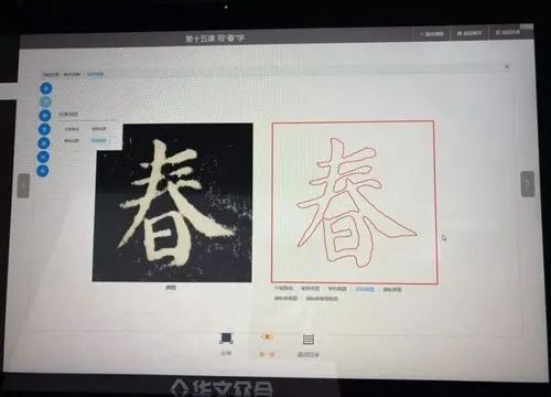 華文眾合智慧書法教室推出“興趣體驗式學習軟件”,內含拓碑帖、識字體、拼字等智能化體驗小游戲;動畫演示,用動畫表現字的筆順軌跡,學生在觀看動畫時就記住了字體筆順;獨創的六步臨摹教學法通過6個步驟的臨與摹,讓學生在臨和摹的替換過程中,注意力更集中,對字體的記憶更深刻;集字創作模式可以幫助學生輸出自己的書法作品,增加自信心。