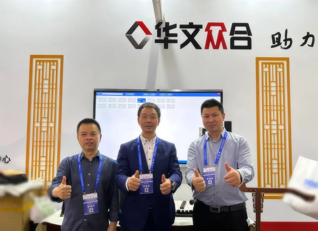 深圳市教育裝備行業(yè)協(xié)會會長彭錦環(huán)(左二)蒞臨指導(dǎo)華文眾合展位