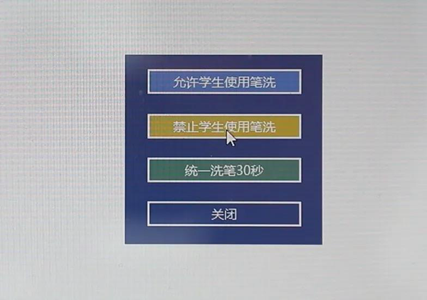 在筆洗功能菜單中點(diǎn)擊【禁止學(xué)生使用筆洗】,學(xué)生端的筆洗控制按鈕會(huì)自動(dòng)消失,這樣就收回學(xué)生洗筆權(quán)限。課堂盡在老師掌握。