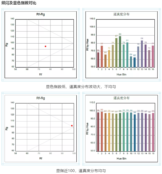 顯色指數(shù)Ra>96,色度變化分布均勻,色彩還原力強(qiáng),接近自然光。