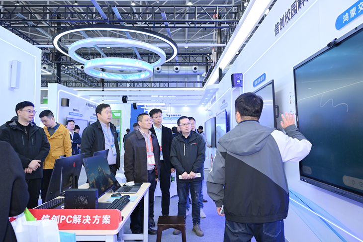 在教育信息安全領(lǐng)域,基于國產(chǎn)化技術(shù)架構(gòu),實現(xiàn)從硬件芯片到軟件系統(tǒng)的全鏈路自主可控。“天宮之印”信創(chuàng)校園解決方案集可信計算、數(shù)據(jù)加密等技術(shù),涵蓋信創(chuàng)智能終端、交互智能平板、信創(chuàng)啟課3+教學(xué)系統(tǒng)、信創(chuàng)管理應(yīng)用系統(tǒng)等產(chǎn)品,且啟課3+教學(xué)系統(tǒng)已完成多個國產(chǎn)主流操作系統(tǒng)兼容性認(rèn)證。本屆展示會,長虹依托OpenHarmony5.0.3版本,率先發(fā)布行業(yè)首個智慧教育場景國產(chǎn)操作系統(tǒng)—“長虹教育鴻蒙系統(tǒng)”。隨著長虹持續(xù)以技術(shù)突破推動信創(chuàng)生態(tài)繁榮,更多安全、適配、高效的國產(chǎn)化方案將服務(wù)教育行業(yè),為教育數(shù)字化轉(zhuǎn)型提供堅實的基礎(chǔ),助力我國教育信息化邁向更高質(zhì)量發(fā)展階段。