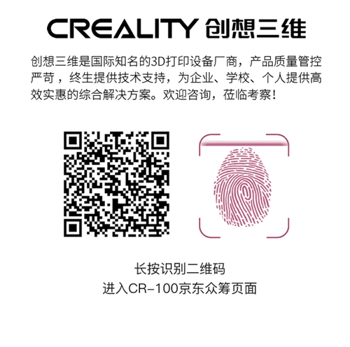 目前,創想三維智能迷你3D打印機CR-100眾籌活動正在火熱進行中。不過需要注意的是,由于本次參與眾籌的設備數量不多,還在為親友新年禮物苦惱的小伙伴們可要抓緊了,感興趣的現在可直接進入京東金融眾籌平臺參與活動哦!