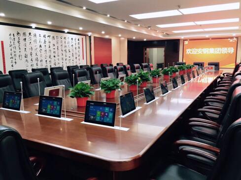 安鋼集團(tuán)會議室需要建成能滿足日常開會及多種會議需求的會議室,根據(jù)客戶需求,itc特為安鋼集團(tuán)建設(shè)了一套無紙化會議系統(tǒng)解決方案來滿足。
