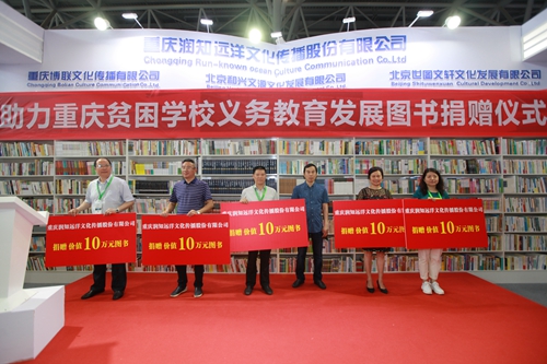 第76屆全國教育裝備展示會于4月26日在重慶悅來國際會展中心啟幕,為深入貫徹習近平總書記在渝召開“兩不愁三保障”問題座談會上的重要指示精神,重慶市教學儀器裝備協會在韜奮基金會、中國教育裝備行業協會、中國書刊發行業協會的指導下,組織重慶潤知遠洋文化傳播股份有限公司、重慶博聯文化傳播有限公司、北京和興文源文化發展有限公司、北京世圖文軒文化發展有限公司等愛心企業在展會上向貧困地區中小學捐贈中小學適讀圖書共計14萬余冊,價值360余萬元,助力貧困地區義務教育發展,將好書送進學校,培育廣大在校學生的閱讀習慣,建設書香校園。教育部關工委常務副主任、中國教育裝備行業協會會長王富,重慶市江北區副區長段華、重慶市教委關工委常務副主任鄧朝喜、重慶市人民政府督學、教委關工委副主任鄭金成、中國書刊發行業協會副秘書長鮑黎均、韜奮基金會閱讀組織聯合會會長石恢等參與活動。