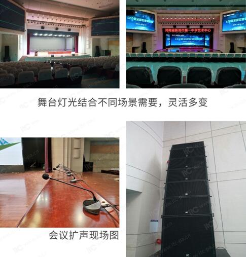 新鄭市第一中學藝術中心,建筑面積2081平方米,主要用于各類大中型會議,兼顧演各種文藝、歌舞演出。按照該功能定位,itc特為河南省新鄭市第一中學藝術中心打造了一套集LED顯示系統、舞臺燈光系統、會議擴聲系統的整體解決方案。