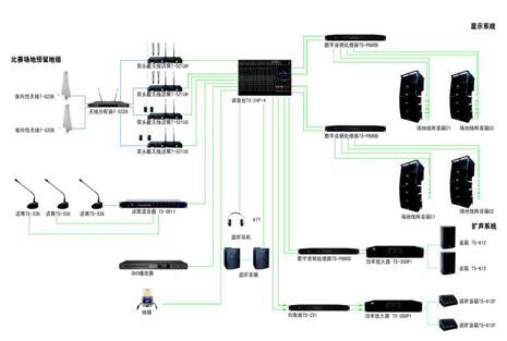 結合體育館的實際情況,綜合考慮分散式和集中式兩種揚聲器布置方式的優缺點,itc決定在此體育館不用單純的分散式或集中式擴聲,而采用一種既分散又相對集中的新的揚聲器布置方式。此種布局是通過不同揚聲器對觀眾席和比賽場地進行覆蓋,對每組揚聲器進行準確的延時設計,減少延時回聲,使觀眾席上保證有足夠的聲壓級和良好的語言清晰度。同時在主席臺設立固定的擴聲方式,滿足主席臺的監聽要求。