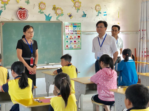 省委教育工委委員、省教育廳總督學曹伴好(右一)現場巡視指導測評工作