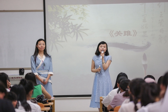2018年6月14日,湖南化工職業(yè)技術(shù)學(xué)院思政課教師李菡(左一)和語文課教師鄧瀅(右一)共同帶來了一堂特別的思政課。羅治國/攝