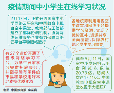 “‘停課不停學’期間,各地充分利用現代信息技術手段,通過多種途徑努力做好線上教學工作,統籌利用電視和網絡資源,統籌課程學習和戰‘疫’專題教育,統籌在線學習特點和學生實際需要,統籌用好本地資源和國家平臺資源,統籌發揮骨干教師和全體教師作用,統籌積極推進和規范實施相結合,積累了寶貴經驗。”呂玉剛說。