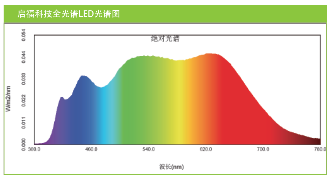 啟福科技全光譜LED通過紫光芯片+熒光粉實(shí)現(xiàn)的,通過加入紫光芯片或添加藍(lán)峰和熒光粉峰之間凹陷區(qū)域波長的熒光粉來補(bǔ)全缺少的短波紫光、 青光、短波綠光、長波紅光部分光譜,大大增強(qiáng)了光譜連續(xù)性,完整性,使得色域廣泛,與太陽光全光譜更加接近。