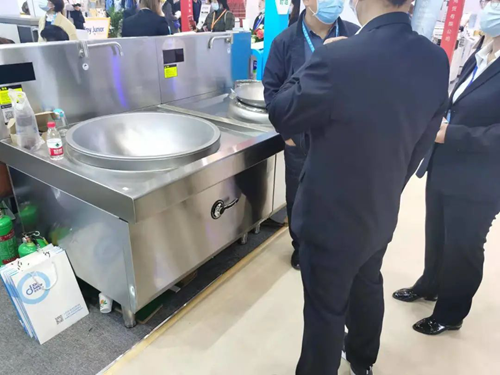 開場不久,名廚磁電的爐灶展區便圍滿了人,各位學校領導一眼就被這幾臺靚眼的“大家伙”所吸引,到最后還忍不住親手體驗一把。