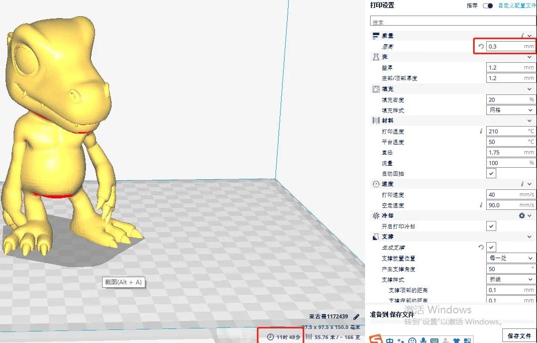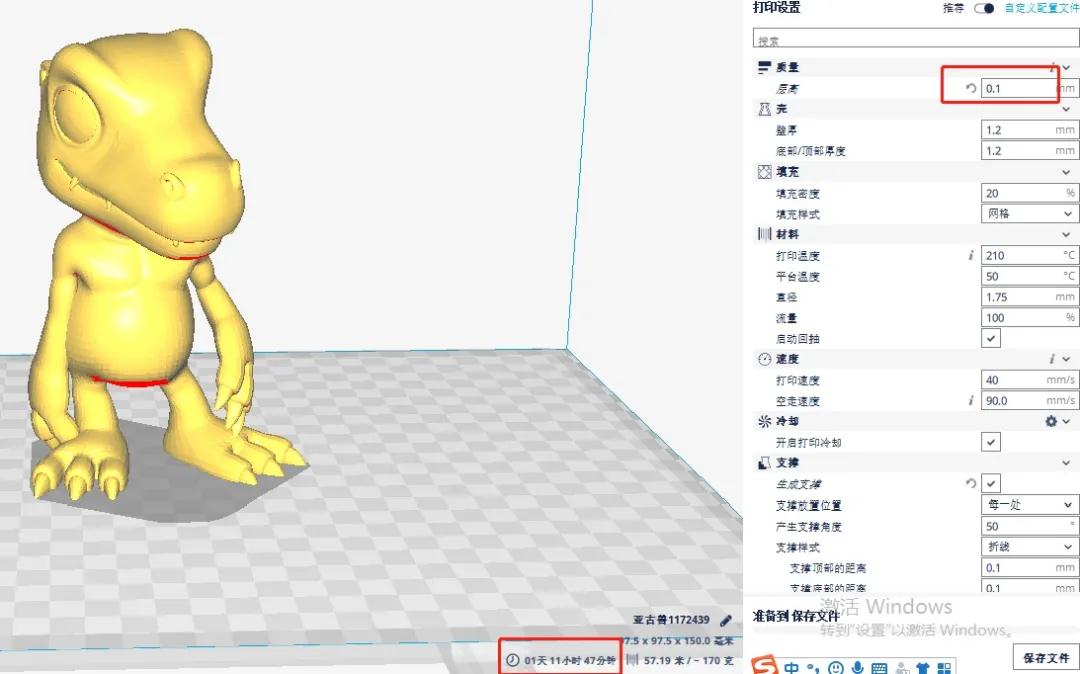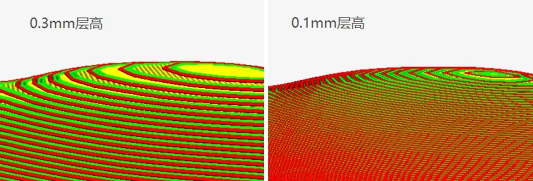 對于模型來說,最直接影響其表面打印效果的便是層高。層高參數為0.1mm-0.3mm之間,越小則越精細,同時,打印時間也成倍增加,0.1mm層高打印時間是0.3mm的3倍打印時長。