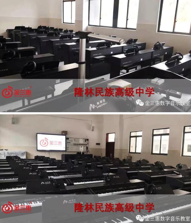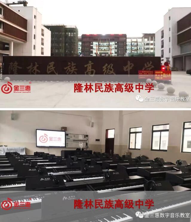 隆林民族高級中學的電鋼琴教室正式開始使用,本校數字化音樂教室由北京金三惠科技有限公司負責提供、安裝、培訓。