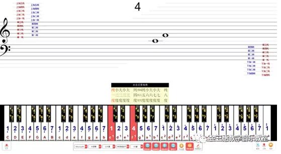 樂理教學:讓樂理可視化講解一目了然,所見即所聽授課效果。樂理知識教學是由一組觸摸發聲的高低音譜表,一個模擬鍵盤、音名、唱名、線間關系功能,還有老師常用的音程尺,32種和弦尺,還包括15種調式,128種系統自帶音色等組成。在講解模式下無限延伸漫游功能,在白板上對書寫內容可左右拖動,書寫講解上可支持筆記粗細六度調節。標注筆跡可與課件同步播放,提升授課效果和學習成果。