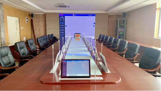 該單位指揮中心會(huì)議室,針對(duì)用戶需求,配置了一套先進(jìn)的無紙化會(huì)議系統(tǒng),用以將會(huì)議各個(gè)信息、技術(shù)環(huán)節(jié)融合貫穿整個(gè)會(huì)議過程,既解決傳統(tǒng)開會(huì)效率低、枯燥、形式單一,又能達(dá)到節(jié)約資源、安全保密的作用。
