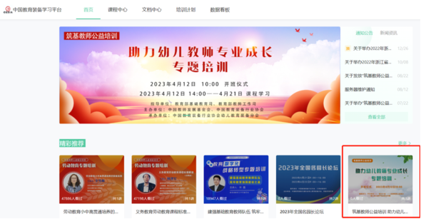 開(kāi)班儀式:4月12日10:00在首頁(yè)——“精彩推薦”板塊觀看《“筑基教師公益培訓(xùn)”——助力幼兒教師專業(yè)成長(zhǎng)》開(kāi)班儀式。