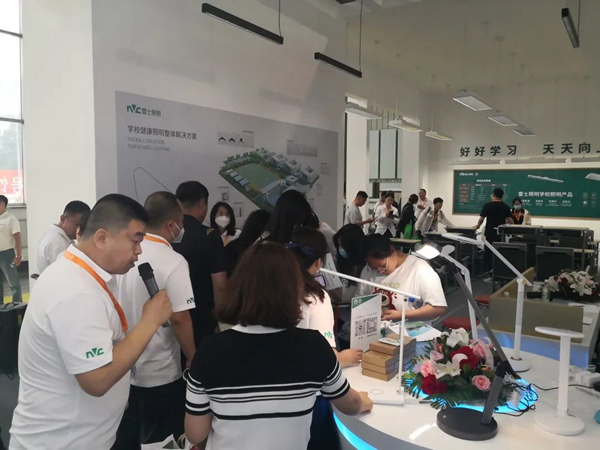 工作人員熱情接待參展者,詳細地向參展客戶講解智慧照明校園創新應用解決方案,帶領客戶了解雷士照明的產品與服務。