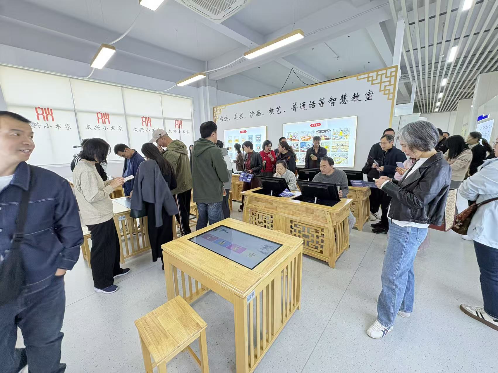 2025年11月13日,青島市市北區(qū)教育體育局考察團(tuán)一行走進(jìn)文興小書(shū)家產(chǎn)品體驗(yàn)中心,考察團(tuán)通過(guò)沉浸式體驗(yàn)、技術(shù)研討、教學(xué)場(chǎng)景模擬等形式,全面了解文興小書(shū)家自主研發(fā)的四大智慧教室體系,對(duì)產(chǎn)品在“文化傳承+數(shù)字創(chuàng)新”融合中的突破,開(kāi)啟了一場(chǎng)關(guān)于教育創(chuàng)新與科技融合的深度探索之旅。