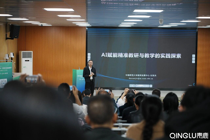 在專家報告環(huán)節(jié)中,華南師范大學杜炫杰副教授結(jié)合課例就AI如何賦能高效課堂和精準教研進行分析和解讀。