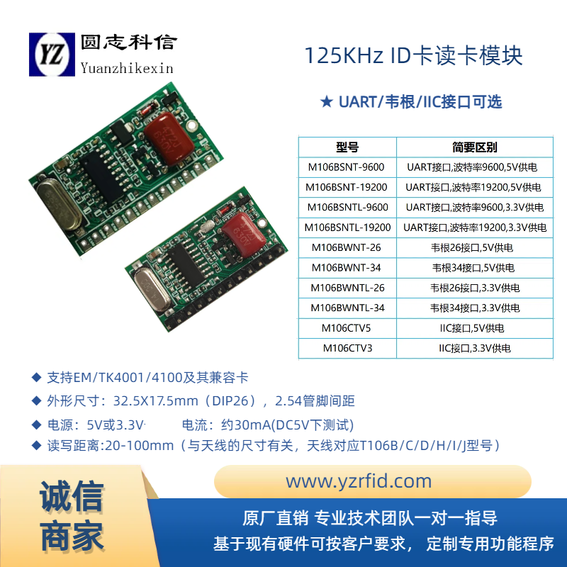 圓志ID卡 125K讀卡模塊 EM4001 M107BSN