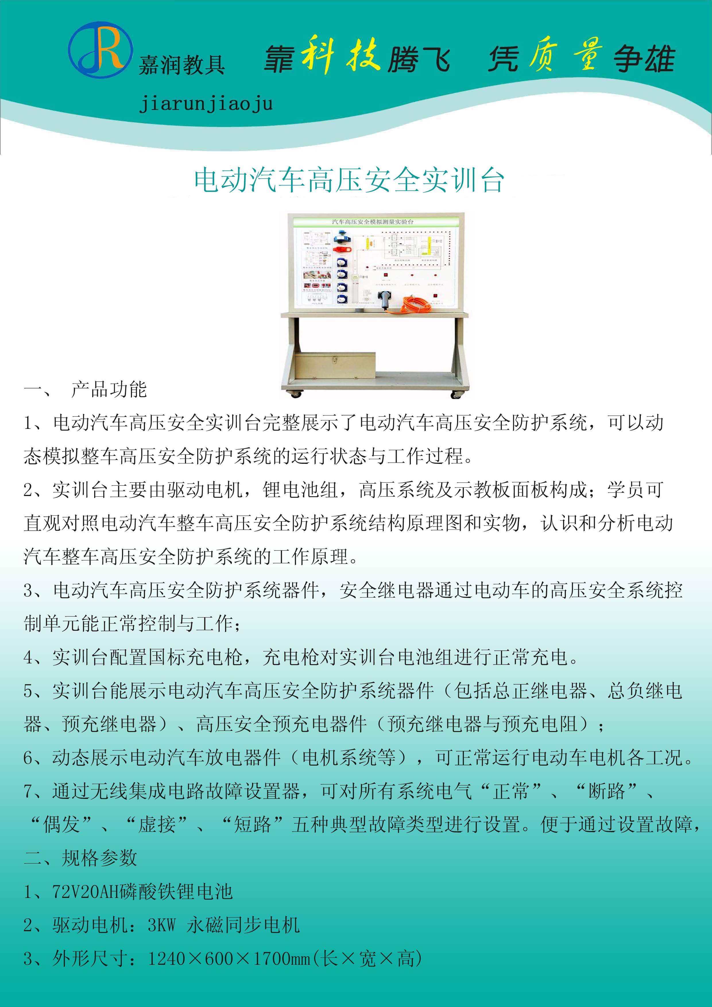 產品詳細介紹強勁的160kW大功率輸出表現;300N.m的最大扭矩輸出,媲美德系豪華品牌2.0T的動力水準;0-50km/h加速僅4.18秒;博格華納效率高達98%以上的減速器;新能源第三代先進電控管理技術——EMD3.0智能電控系統,體積更小、重量更輕、布局更安全合理。全面監測整車260個部件數據,智能管理電池,使續航更長;智能優化電機,使動力更強;智能調校整車,使操控更精準,行駛更安全。 技術特點: 1、該示教板完整展示了純電動汽車動力系統,可以動態模擬純電動汽車的啟動、低速行駛、一般行駛、全速行駛、減速行駛和停車六種工況下的能量流動方向以及電動機的運行狀態。采用LED動態顯示。 2、示教板面板采用4mm厚耐腐蝕、耐創擊、耐污染、防火、防潮的高級鋁塑板,表面經特殊工藝噴涂底漆處理;面板打印有永不褪色的彩色電路圖與工作原理示意圖,表面噴涂光油;學員可直觀對照汽車電動動力系統結構原理圖和實物,認識和分析汽車電動動力系統的工作原理。 3、示教板面板上安裝有點火開關、工況開關、油門踏板、擋位開關、制動開關、數字轉速表、電流指示表等,并輔以發光二極管進行系統流向的動態指示,還設有一臺模擬電機用來演示電動機的工作狀態。 4、示教板面板部分采用1.5mm厚模具成型框架結構,外形美觀;底架部分采用鋼結構焊接,表面采用噴涂工藝處理,帶自鎖腳輪裝置,示教板底座上配有40cm左右的桌面,方便放置資料、輕型檢測儀器等。 5、示教板工作采用普通220V交流電源,經內部電路變壓整流轉換成12V直流電源,無需蓄電池,減少充電的麻煩,12V直流電源有防短路功能。 6、外接電源:交流220V±10% 50Hz。 7、工作電壓:直流12V。 8、工作溫度:-40℃~+50℃。 9、外形尺寸:1600×700×1700mm(長×寬×高) |