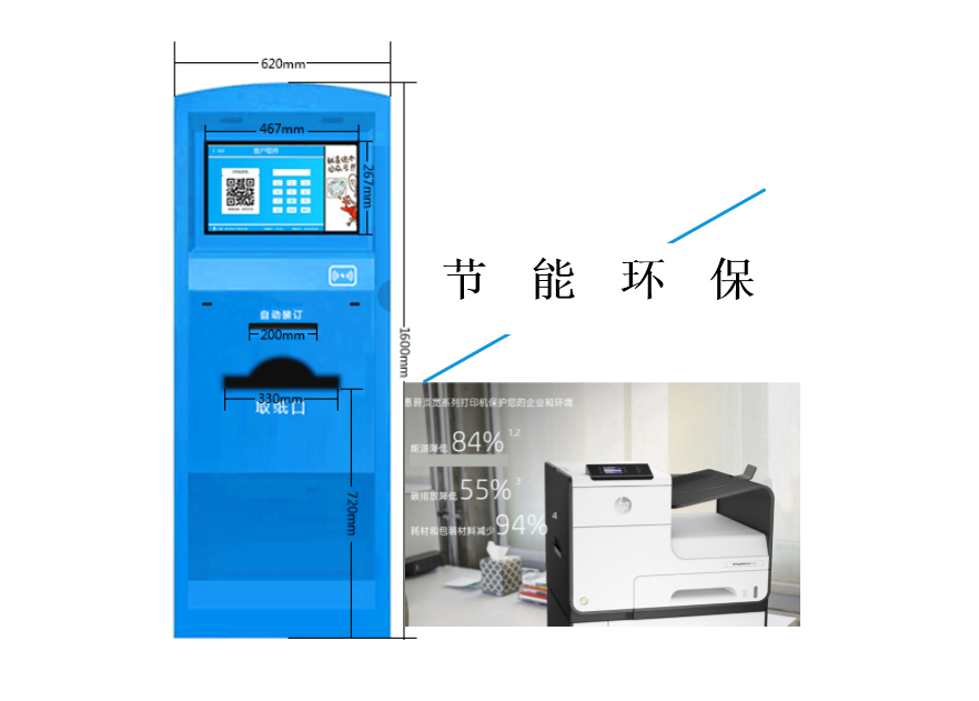 通過對體驗過自助打印服務的調研發現,同學們對自助打印機的打印流程非常滿意,打印速度快,隨時隨地都可以下單,下單后掃一掃取件的方式非常符合移動互聯網時代的用戶習慣,要打印東西再也不用拿U盤了;不僅如此,還有同學直接做起了自助打印機的管理員,平常負責添加紙張和更換耗材,也獲得了一份不錯的收入 頁寬陣列打印技術,色彩連貫性更強,打印品質更高; 打印速度:55頁/分鐘; 首頁輸出:≤7S; 分辨率:1200x1200dpi色彩更精細; 低功耗:待機≤5W;工作功率≤70W; 三年全國聯保,售后更安心。