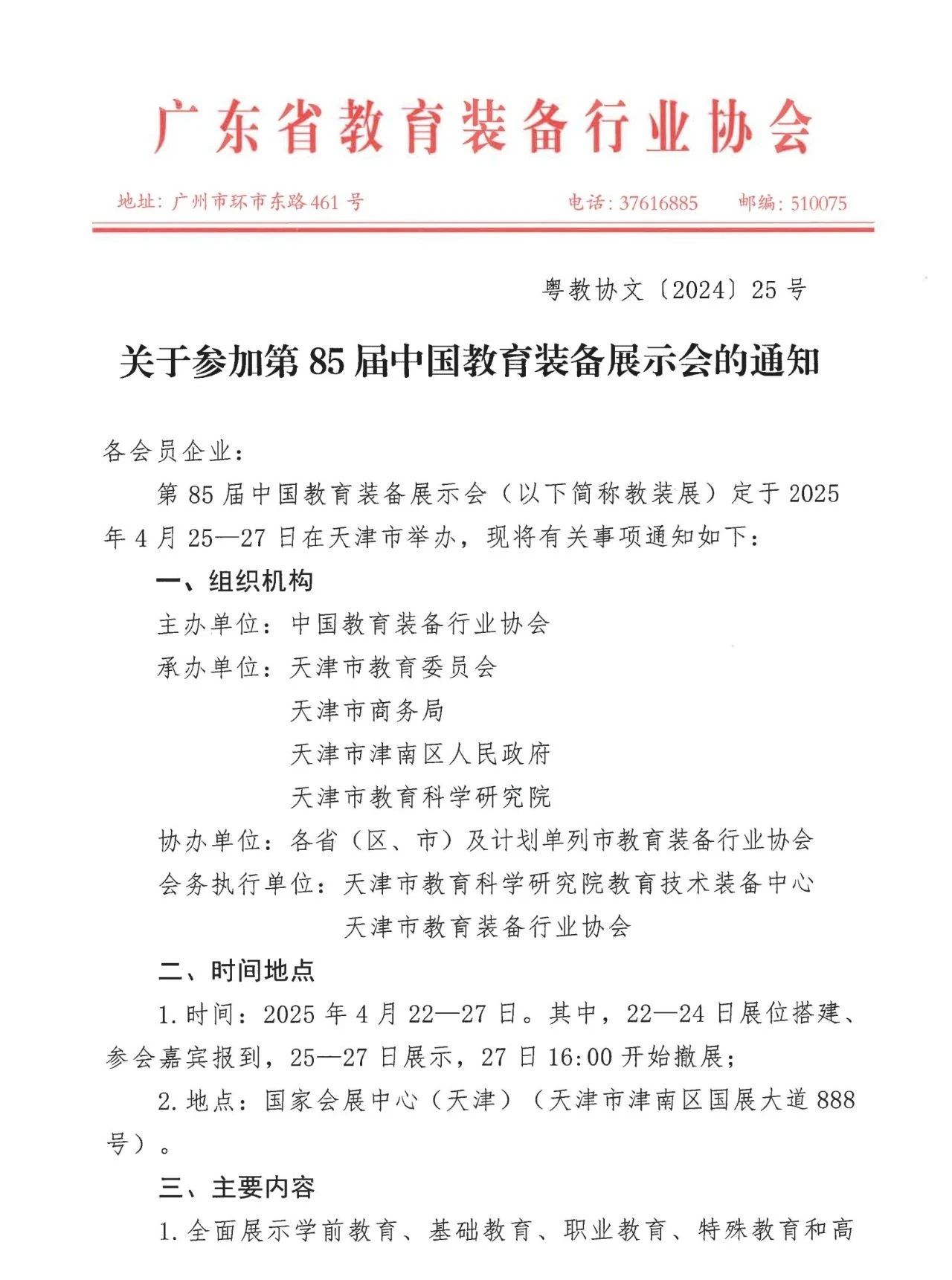 主辦單位:中國(guó)教育裝備行業(yè)協(xié)會(huì)展會(huì)時(shí)間:2025年4月25日-27日展會(huì)地點(diǎn):國(guó)家會(huì)展中心(天津)